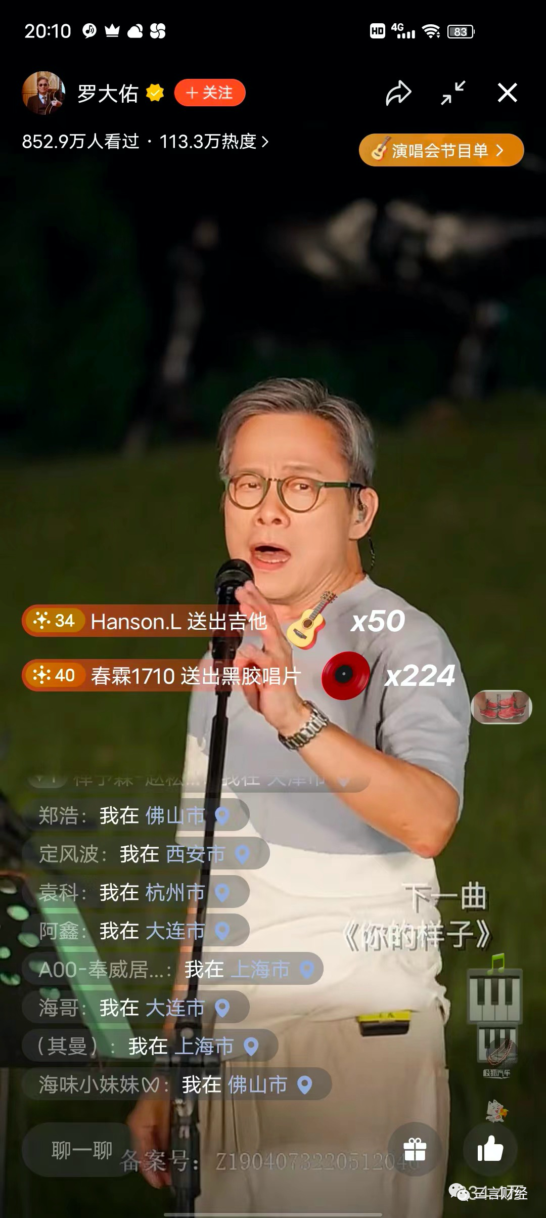 开播10分钟,罗大佑一首《追梦人》刚刚唱完,直播间累计852.9万人看过。