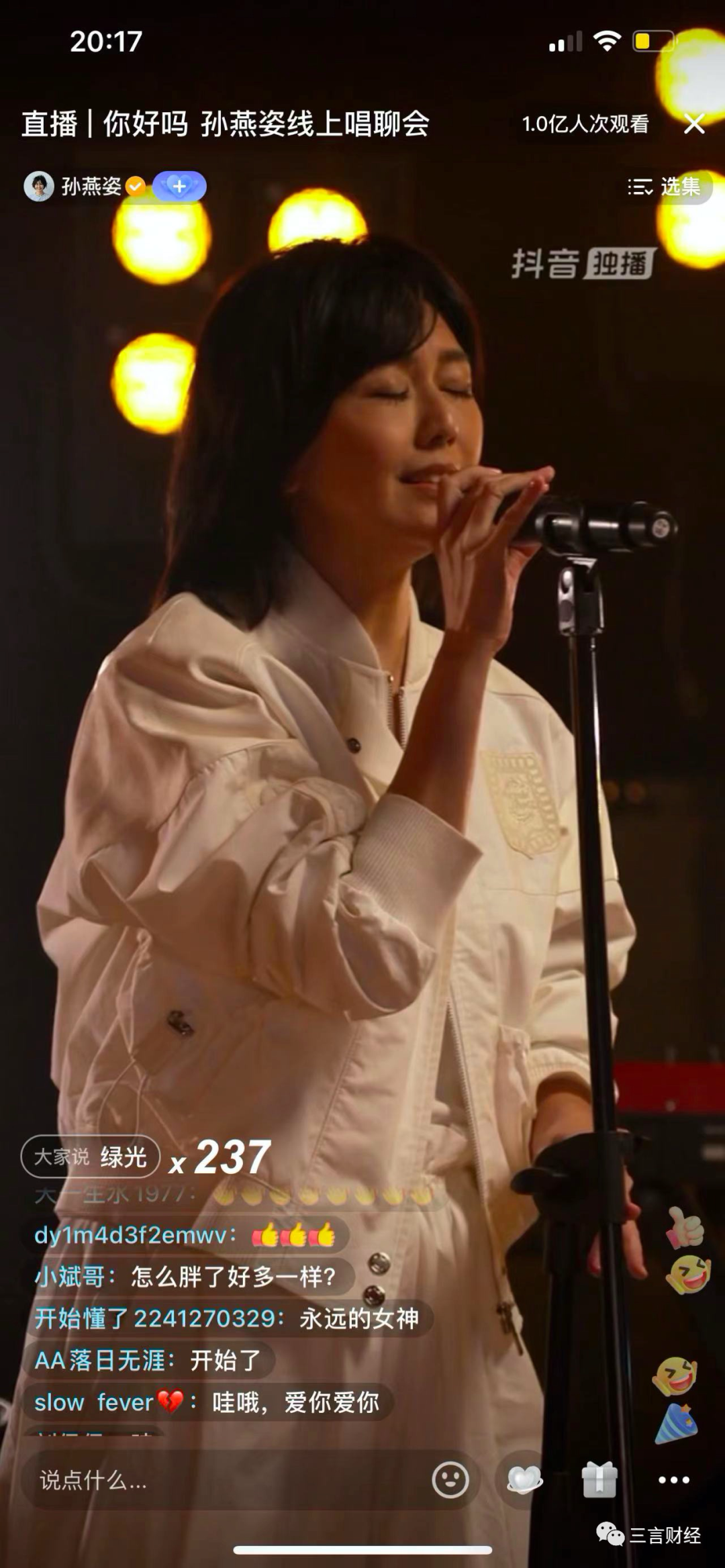 而孙燕姿也开嗓了,一首《雨还是不停的落下》,直播间已达1亿观看人次。