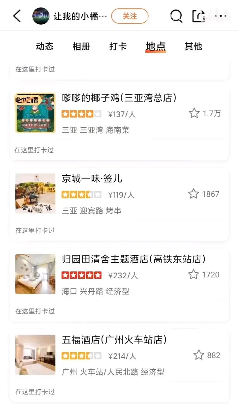 其中还有打卡烟酒店、槟榔店的信息,但是是否虎子真的抽雪茄、嚼槟榔,也不能做确切判断。
