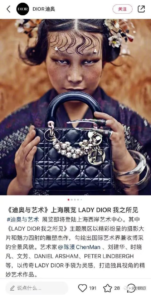 据了解,迪奥这张照片是由中国时尚摄影陈漫拍摄制作的,她也因此被网友批评,是迎合欧美市场的畸形审美。