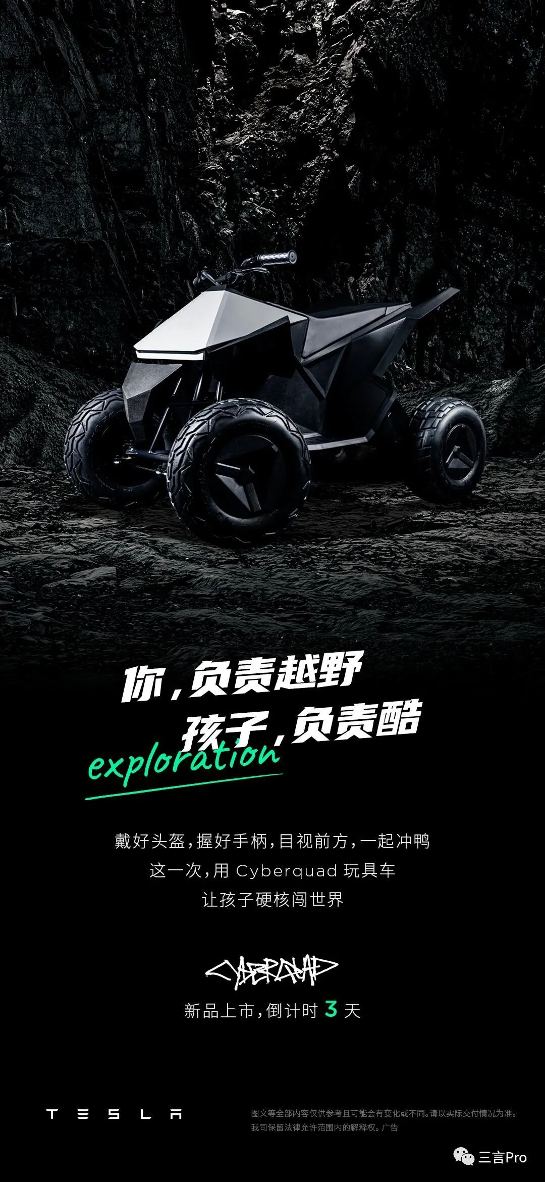 据特斯拉官微消息,特斯拉宣布Cyberquad玩具车将在中国上市。