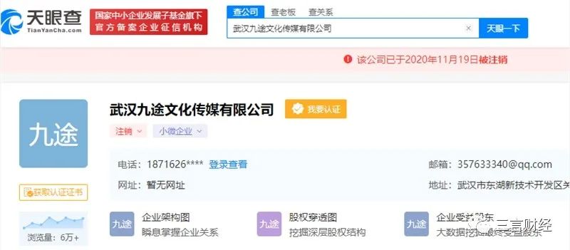 据天眼查信息显示,付海龙任法人的武汉九途文化传媒有限公司已于去年11月19日注销,该公司股东为付海龙及武汉斗鱼,二者分别持股90%和10%。