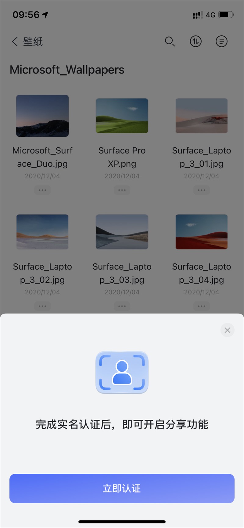 当然,这个功能还需要用户先进行实名验证才可以使用,之后当你选中文件时即可开启分享功能,支持多种文件格式但不支持相册。值得一提的是,此过程需要采集人脸数据。
