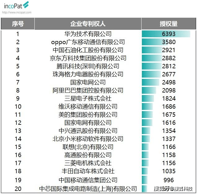 在incoPat《2020年公告发明授权专利年报》的企业专利权人TOP20榜单中,华为、OPPO、vivo的授权量位居前十。根据WIPO(世界知识产权组织)数据,在2020PCT专利申请人排名中,华为排名第一,OPPO排名第八,小米未入围前二十。