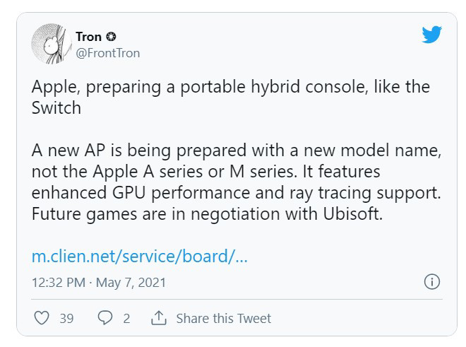韩国社区网站Clien上的一篇帖子爆料,苹果公司正在开发一款类似Switch的游戏机。此前有报道称,高通公司最近也正在开发类似的东西。也许不少人会认为,苹果的iPhone和iPad系列已经搭载了性能强大的芯片组,可以畅玩游戏大作,苹果推出游戏机类产品似乎没有必要。不过,苹果的移动设备并不是面向游戏玩家的,因此,即使硬件能力较强,iPhone和iPad的设计并没有强大的内部冷却系统,因为苹果优先考虑的是的外形因素。