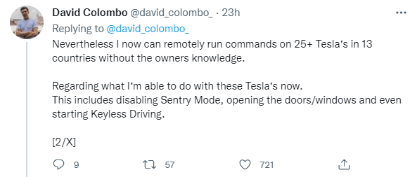 科伦坡还表示,他一直在与特斯拉的安全团队保持联系,特斯拉目前正在调查该问题,如果有最新进展也会告知科伦坡。