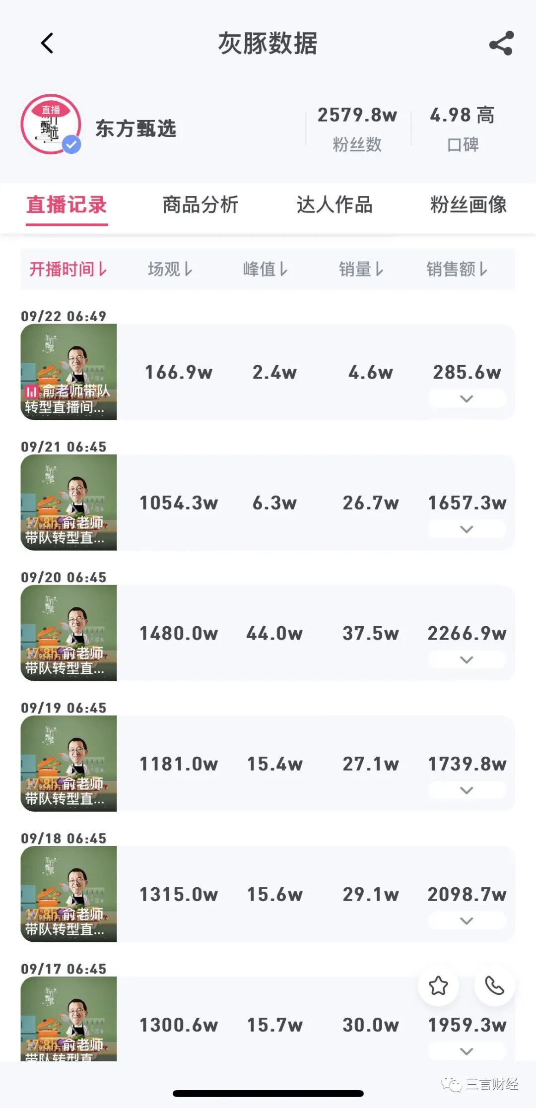 从以往场观和销售额上来看,东方甄选基本保持了一致的水平。20日算是近5天里的一个高点。