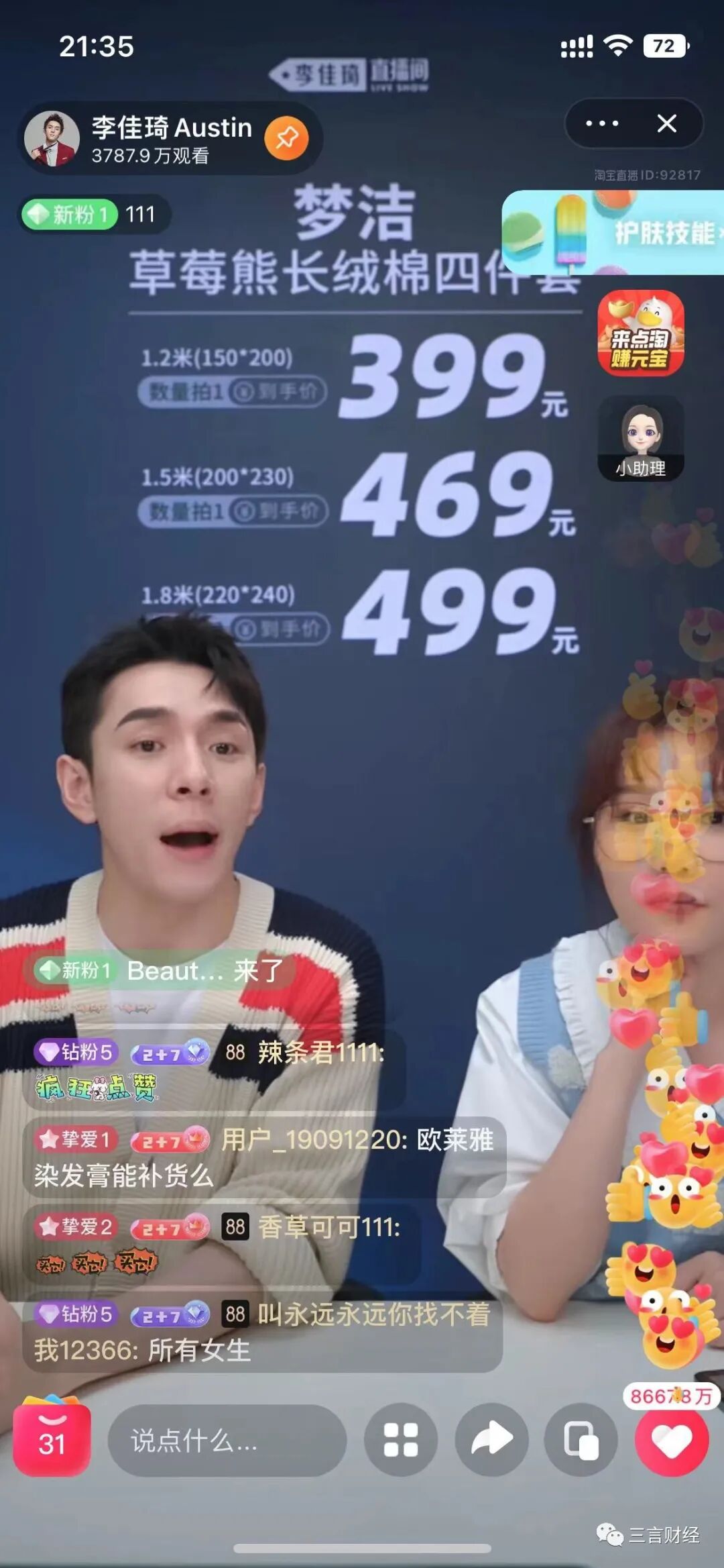 21日,李佳琦复播第二天也只直播了3个小时,也收获了近5000万观看量。