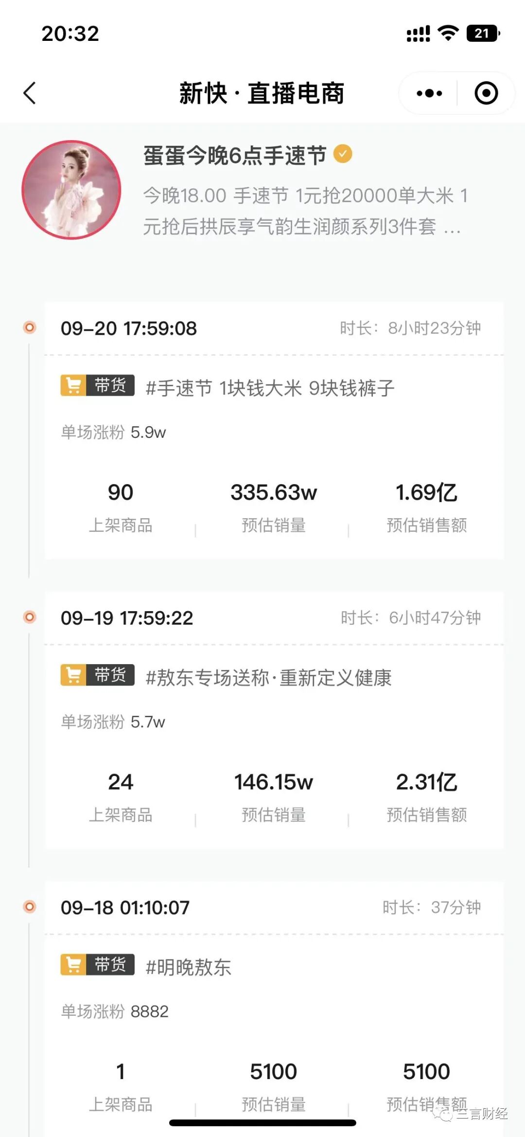 而快手的辛巴家族,辛巴最近几天没直播,蛋蛋20日直播预估销售额1.69亿,与此前的销售额相比,也看不出什么问题。