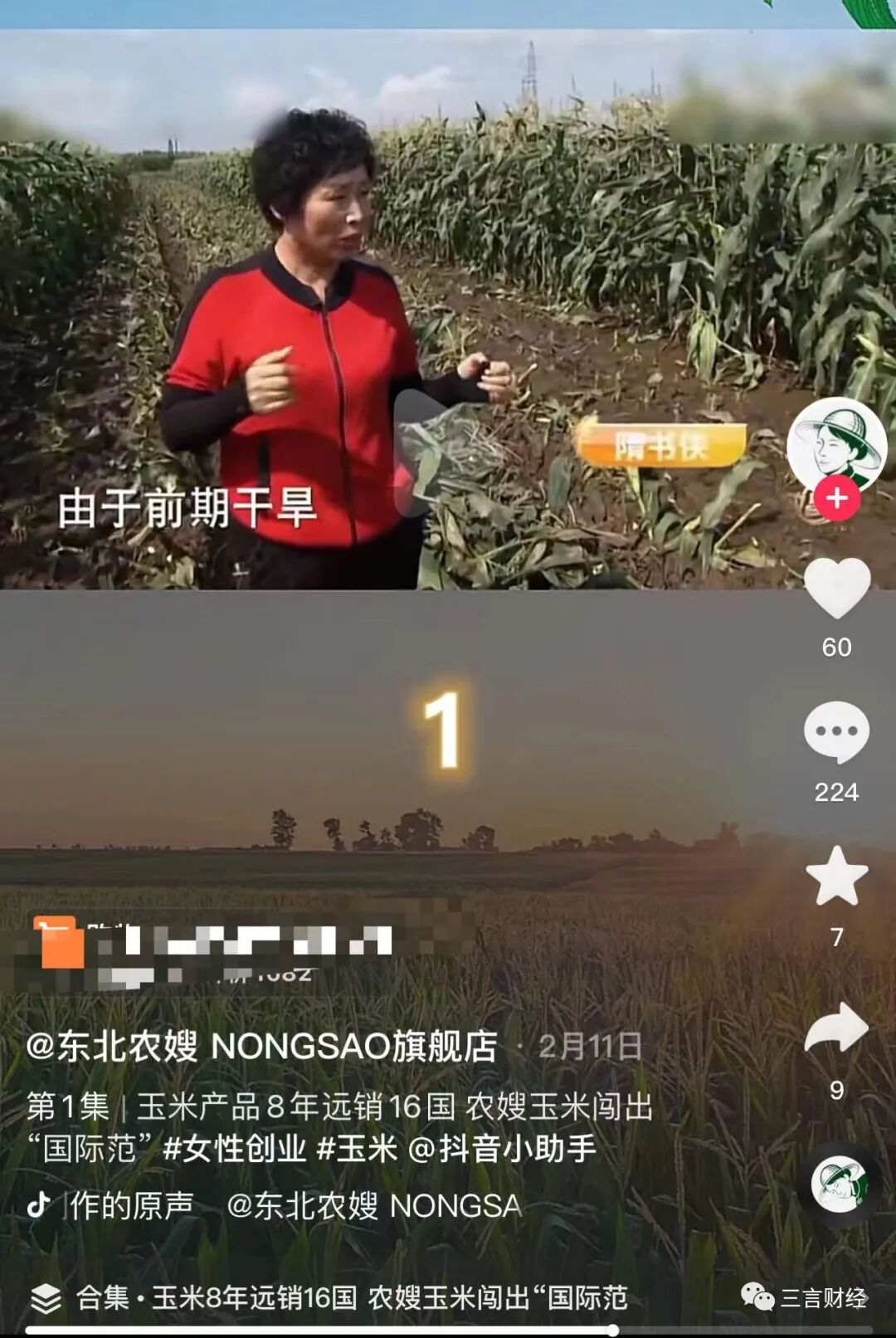 农嫂强调虽然收购价低于零售价,但公司加工成本高,最终销售价格高也是为了保证玉米品质。不仅如此,视频还不断强调“谷贱伤农”概念。