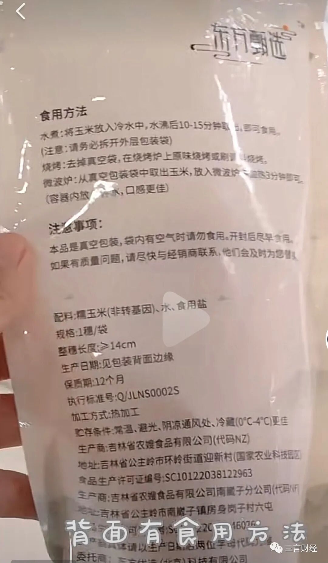 根据网友上传的评测视频显示,东方甄选鲜食玉米的供应商为吉林省农嫂食品有限公司。