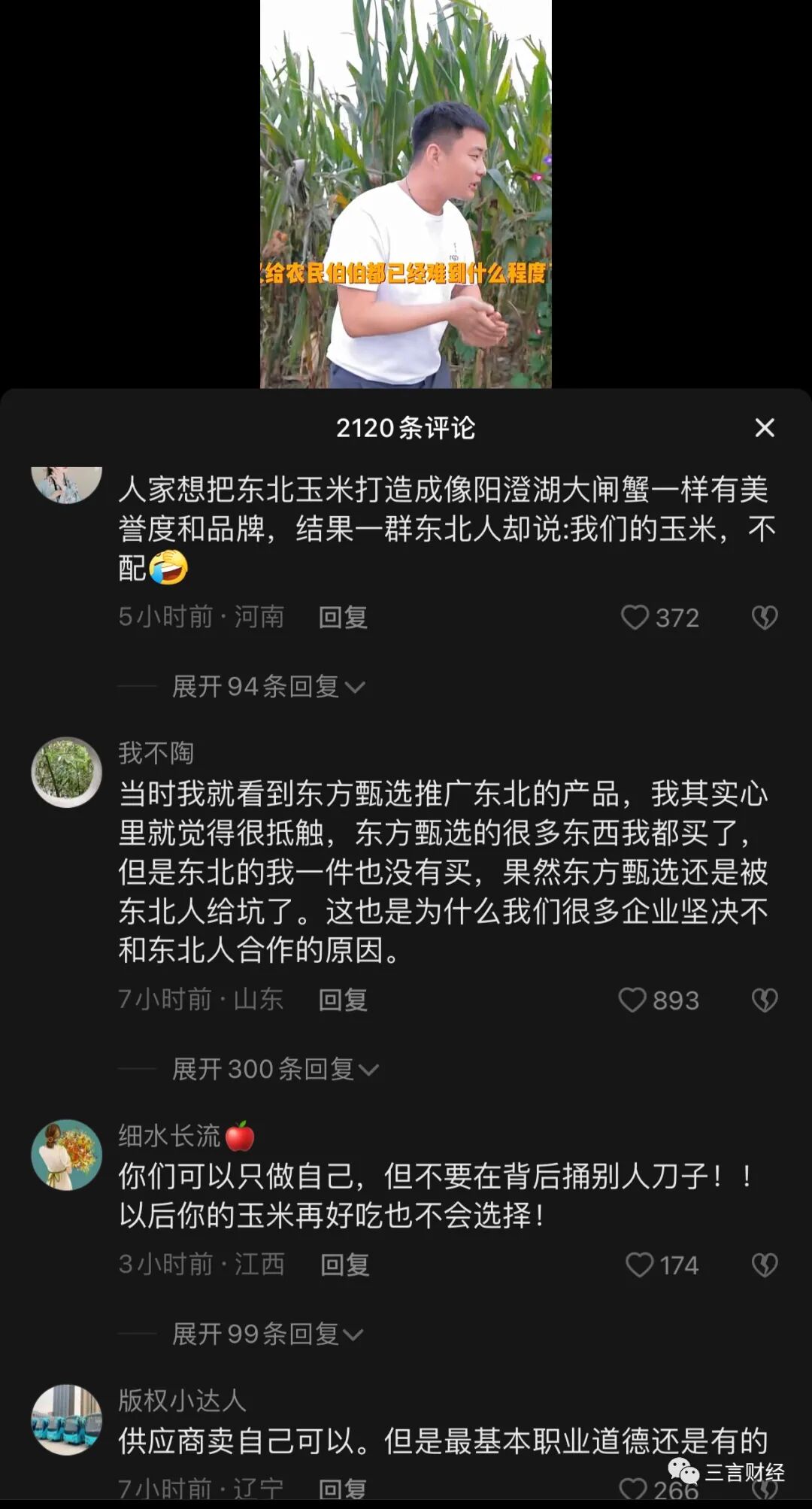 然而,事件并没有因辛巴的道歉而结束。此后,东方甄选的鲜食玉米供应商也引发大量网友关注。