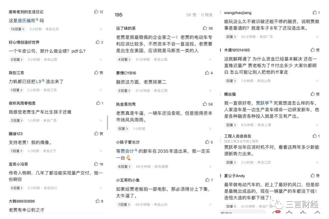 在网友激烈的讨论中,虽然不乏有讽刺之意。但是对于贾跃亭的融资能力,还是很佩服的。