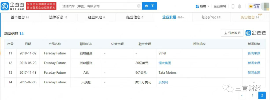 据统计,从成立截止到2021年8月份,FF共有14次融资记录,总融资金额已超50亿美元。