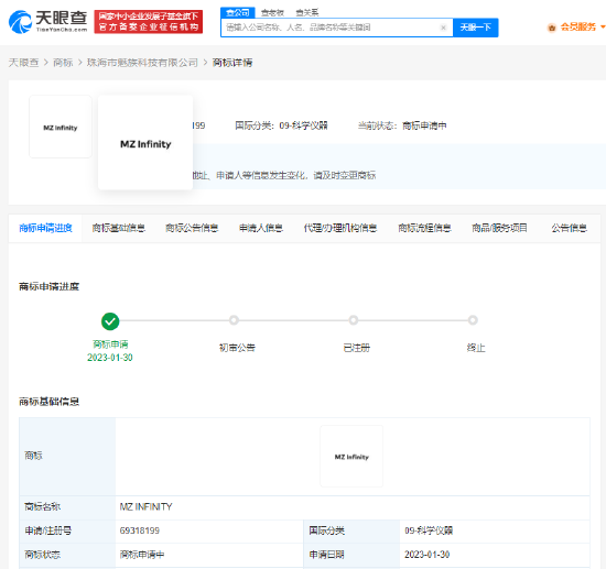 天眼查App显示,近日,珠海市魅族科技有限公司申请注册1枚“无界手机”商标,国际分类为科学仪器。此外,该公司还申请注册2枚“MZ INFINITY”“MZ INFINITE”商标,国际分类均为科学仪器。目前,上述商标商标状态均为申请中。