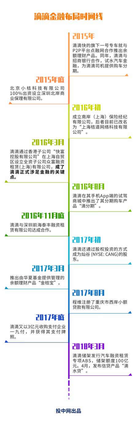 而值得注意的是,虽然“金融服务”于2日上线,滴滴却对金融板块布局已久。