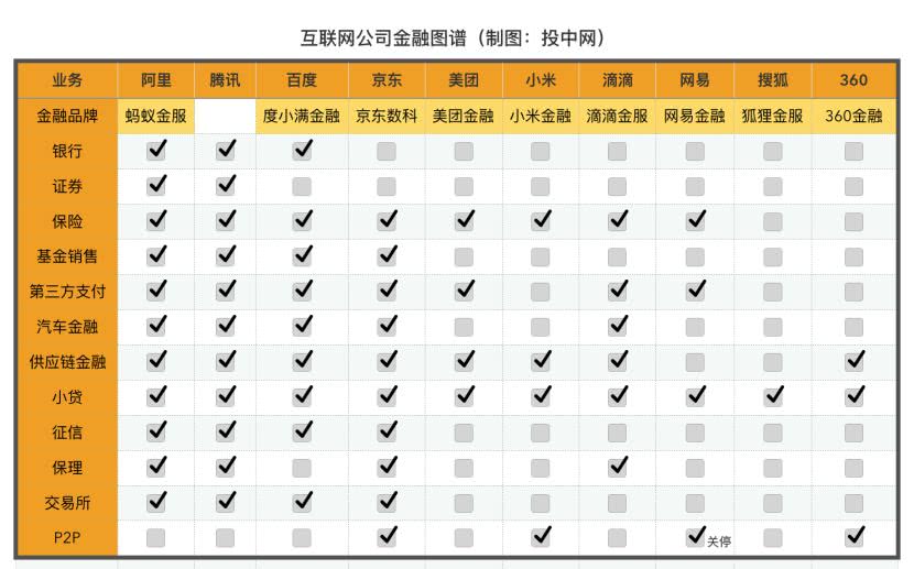 而当下,各大巨头抢滩金融已成热潮。如下图所示,BATJ在银行、证券、保险、基金、信托、第三方支付等板块均积极布局。但在美团、小米、网易等新晋玩家中,滴滴的战斗力可谓遥遥领先,“血值”逼近满格。