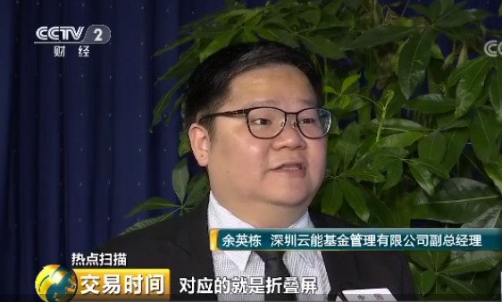 深圳云能基金管理有限公司副总经理余英栋:柔性屏最大的特点是轻和薄,附带的一个产品,就是手机折叠屏。原来手机可能是五六寸,做成折叠屏就可能达到八寸,甚至更大的。相当于折起来是智能手机,翻开来之后就是一个iPad,所以它会有一个很典型的区别,屏幕增大之后,在5G的运行基础之上,它的功能确实比现在的智能屏所达到的功能要大。