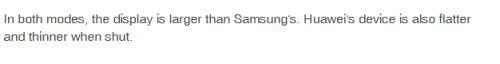 一上来,文章就把华为和三星的折叠屏手机进行比较,除了华为折叠屏手机展开后有8英寸,比三星的7.3英寸更大之外,BBC认为华为手机展开比三星更平,厚度更薄。