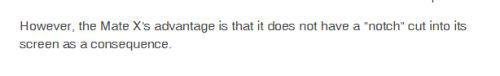 BBC还说,华为的镜头在手机边上,所以没有“刘海”的设计,这使得折叠屏幕打开时不能自拍。有趣的是,BBC也承认,不知道这能不能算一个缺点。但BBC认为,华为手机机身没有缺口(notch),而三星手机为了防止折屏后挡住摄像头,有一个缺口,这个设计让华为比三星更为“先进”。