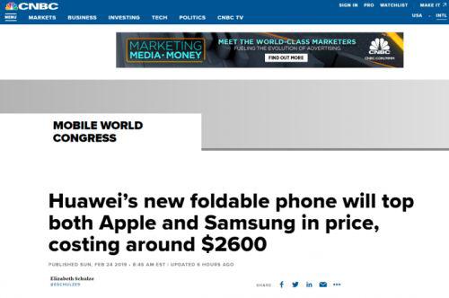 和英媒对于华为折叠屏手机报道相比,美媒更关注美国对于华为的“打压”。CNBC的报道直接明了:华为折叠屏手机售价碾压三星和苹果。