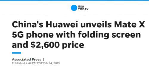《今日美国》(USA Today)的报道也以华为折叠屏手机“破天荒”的售价为标题,但文章更多的是分析华为为何能取得今天的成就。
