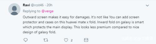 但也有一些网友对华为的外翻设计提出质疑,比如这位网友认为外翻式设计使得机身容易损坏,而华为提供的保护套也很难避免,因此觉得三星的内翻式设计更聪明。