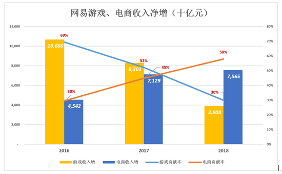2018年,电商收入净增75.7亿,营收增长贡献率达58%,首次超过游戏。