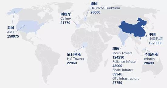 截至2018年12月,全球共有4412963座铁塔,其中三分之二(2952382座铁塔)掌握在铁塔企业手中。世界前11大铁塔公司掌握了全球56.5%的铁塔资源,剩余数百家企业大多数只拥有不超过5000座铁塔,集中于欧洲、拉美、东南亚和非洲等地区。