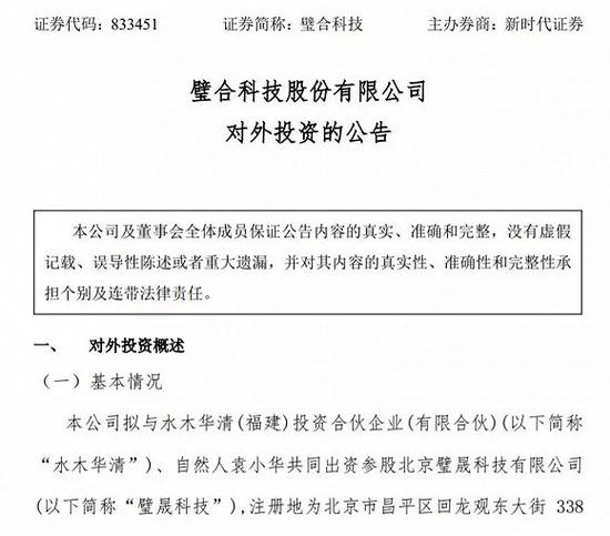 彼时壁合科技称,该笔投资已经通过董事会的决议,尚需等待临时股东大会以及工商行政管理部门审批。
