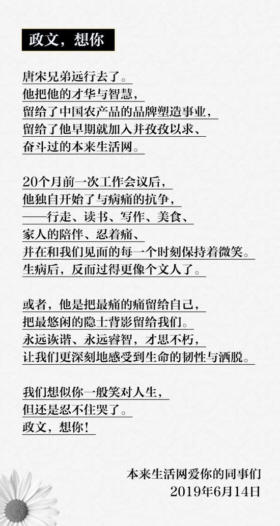 本来生活创办人蒋政文因癌症去世,同事发文悼念