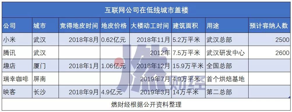 但现实情况是,这些互联网公司在外地拿地盖楼的速度,似乎要比业务发展的速度更快。