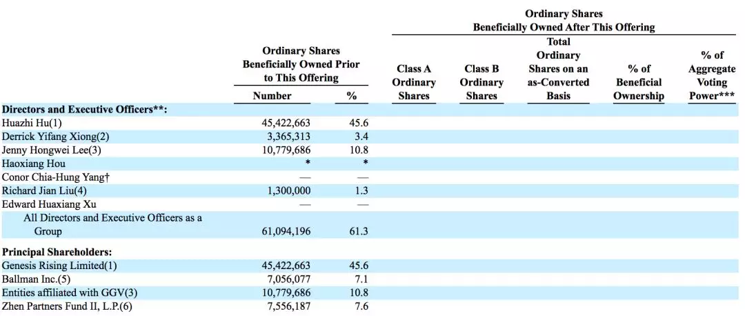 当前披露的股东结构中,亿航无人机创始人兼CEO胡华智直接持有45.6%的股份,联合创始人兼CMO熊逸放持股3.4%,CFO刘剑则持股1.3%。机构投资者中,GGV纪源资本和真格资金分别持有10.8%和7.6%的股份,GGV管理合伙人李宏玮(Jenny)担任公司董事。