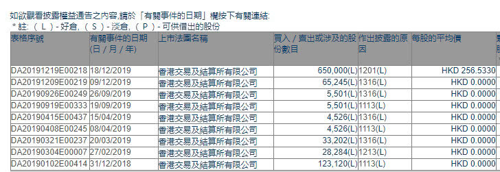 三言财经 12月19日消息,据香港交易所显示,12月18日香港交易所(00388.HK)行政总裁李小加以平均每股256.533港元的价格出售了650,000股的港交所股票。以此计算,相当于套现1.668亿元。