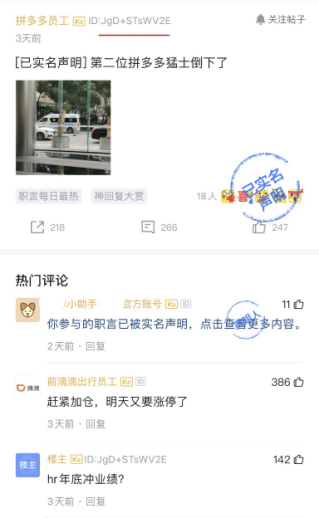 1月10日,原为我司技术开发工程师的王*(花名太虚)在网络平台发布不实视频讯息,自称“《因为看到同事被抬上救护车我被拼多多开除了》”。