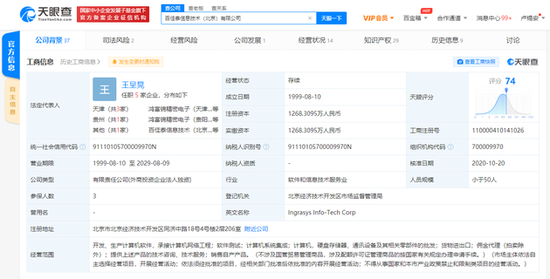 天眼查App显示,百佳泰信息技术(北京)有限公司为富士康关联公司,成立于1999年8月,注册资本约1268.31万人民币,法定代表人为王呈晃,公司经营范围包括开发、生产计算机软件,承接计算机网络工程、软件测试、计算机系统集成等。该公司由富士康工业互联网股份有限公司全资持股。