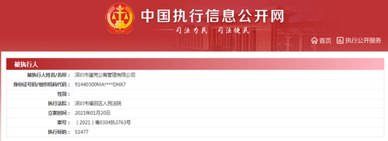三言财经 12月22日消息,中国执行信息公开网显示,近日,深圳市蛋壳公寓管理有限公司新增一条执行人信息,执行法院为深圳市福田区人民法院,案号为(2021)粤0304执3763号,执行标的为51477元。此外,去年11月,该公司被深圳市罗湖区人民法院强制执行,执行标的29327。目前该公司名下被执行总金额超8万元。