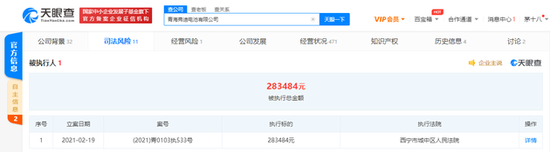 三言财经 2月23日消息,天眼查App显示,近日,青海弗迪电池有限公司新增一条被执行人信息,案号(2021)青0103执533号,执行标的283484元,执行法院为西宁市城中区人民法院。