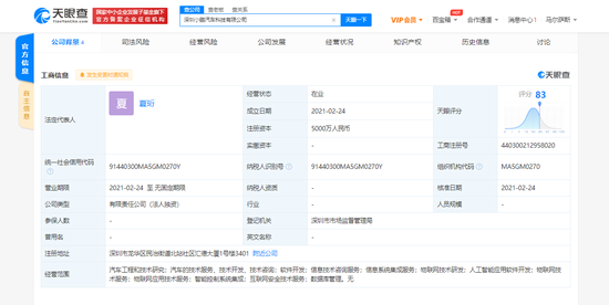 三言财经 2月25日消息,天眼查App显示,2月24日,深圳小鹏汽车科技有限公司成立,注册资本5000万人民币,法定代表人为夏珩,公司经营范围包括汽车工程和技术研究;信息技术咨询服务;物联网技术研发;人工智能应用软件开发;智能控制系统集成;数据库管理等。天眼查股权穿透数据显示,该公司由广州橙行智动汽车科技有限公司全资控股。