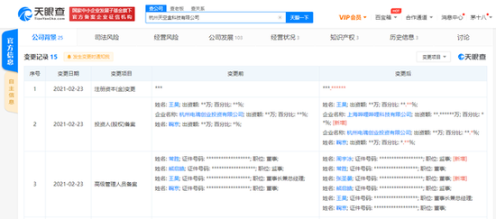 三言财经 2月25日消息,天眼查App显示,近日,杭州天空盒科技有限公司发生工商变更,其股东新增上海哔哩哔哩科技有限公司,注册资本从125万人民币增至约152万人民币。