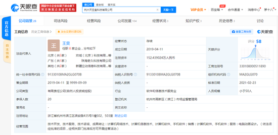 天眼查App显示,杭州天空盒科技有限公司成立于2019年4月,法定代表人为王昊,经营范围包括技术开发、技术服务、技术咨询、成果转让:计算机网络技术、计算机信息技术、计算机软件、手机软件;销售:计算机软件、手机软件;服务:电脑动画设计。