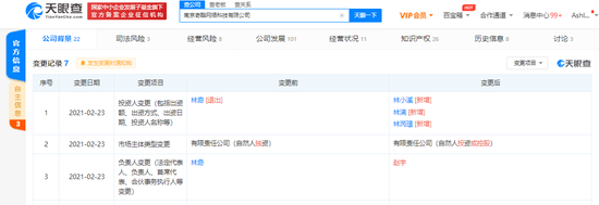三言财经 2月25日消息,天眼查App显示,近日,南京奇酷网络科技有限公司发生工商变更,林奇退出法定代表人,由赵宇接任,新增股东林小溪、林漓、林芮璟。此外,市场主体类型由有限责任公司(自然人独资)变更为有限责任公司(自然人投资或控股)。