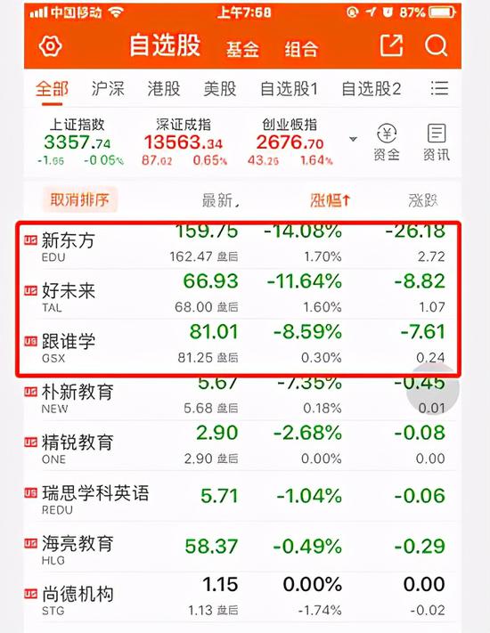 昨日,中概股教育类公司纷纷大跌。截至收盘,新东方报收159.75美元/股,跌14.08%,市值蒸发近445.58亿美元;好未来报收66.93美元/股,下跌11.64%,市值较前一日蒸发近52.95亿美元;跟谁学报收81.01美元/股,下跌8.59%,市值较一夜下跌18.14亿美元。三家教育培训机构一夜间累计蒸发516.67亿美元。