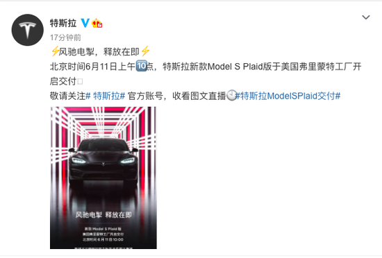 三言财经6月10日消息,特斯拉今日在其官方微博上宣布,北京时间6月11日上午10点,特斯拉新款Model S Plaid版于美国弗里蒙特工厂开启交付。