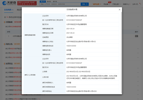 三言财经6月28日消息,天眼查App显示,近日,比特币交易平台北京乐酷达网络科技有限公司(OKCoin)新增一条注销备案信息,清算组负责人徐明星,注销原因为决议解散,债权人公告日期为2021年6月24日至2021年8月8日。