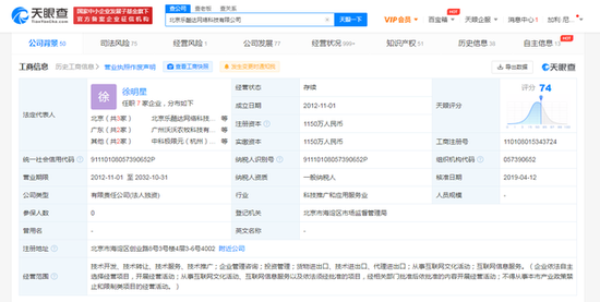 北京乐酷达网络科技有限公司成立于2012年11月,法定代表人为徐明星,注册资本1150万人民币,经营范围包括企业管理咨询;投资管理;互联网信息服务等。