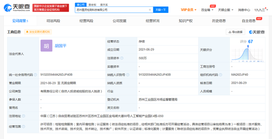 三言财经 6月30日消息,天眼查App显示,6月29日,苏州图灵检测科技有限公司成立,注册资本500万,法定代表人为胡国平,经营范围包括检验检测服务;室内环境检测;认证咨询;标准化服务;计量服务等,股东信息显示,该公司由科大讯飞(苏州)科技有限公司全资持股。