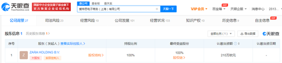 爱特思电子商务(上海)有限公司成立于2012年6月,注册资本210万欧元,由ZARA HOLDING B.V.全资持股。值得一提的是,该公司此前已多次被行政处罚,处罚事由包括以次充好、产品标识不合格等。