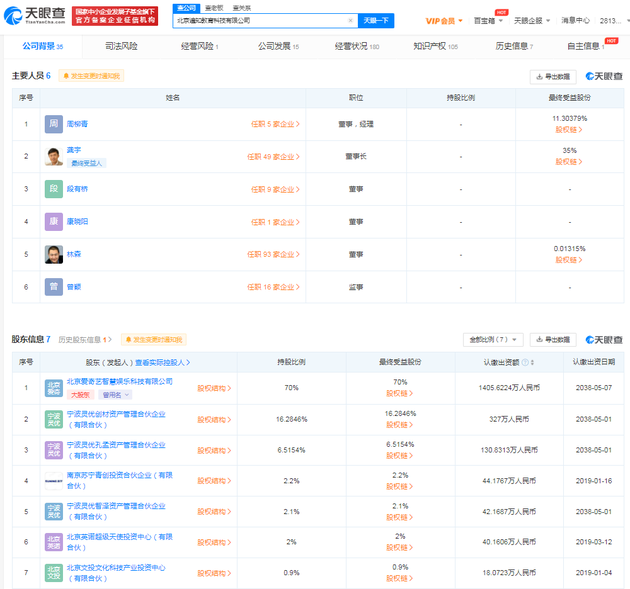 三言财经7月6日消息,天眼查App显示,近日,北京遍知教育科技有限公司发生多项工商变更,新增北京爱奇艺智慧娱乐科技有限公司为股东,龚宇为董事长,同时公司注册资本由约602.41万人民币增至约2008.03万人民币,增幅约 233.33%。