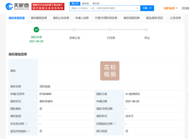 华为申请注册花粉视频商标 国际分类为教育娱乐
